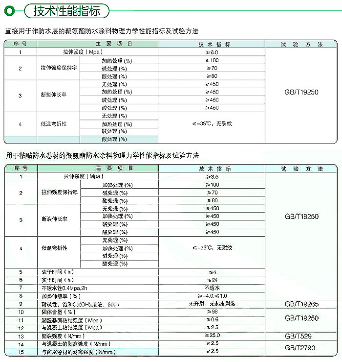 该产品属于双组分化学反应固化型防水材料,属于环保型产品,产品强度可达6_0Mpa以上,延伸可达450%以上,低温达-35℃以下,产品固化后形成无接缝、完整的弹性防水层,提高了建筑工程的防水抗渗能力,尤其是具有较高的强度和延伸性,对基层开裂或伸缩适应性强;
