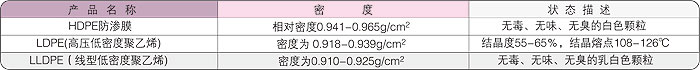HDPE防渗膜主要原料为聚乙烯英文名为:Polythylene或polythene,简称PE(以下或称PE)为乳白色半透明至不透明的热塑性树脂。HDPE防渗膜是高分子聚合物无毒、无味、无臭的白色颗粒,熔点约为110℃-130℃,HDPE防渗膜相对密度为0_941-0_965。 ● 具有良好的耐热性和耐寒性。 ● HDPE防渗膜化学稳定性好,具有较高的刚性和韧性。 ● HDPE防渗膜机械强度好,耐环境应力开裂与耐撕裂强度性能好HDPE防渗膜防渗性能最高,随着密度的上升,HDPE防渗膜机械性能和阻隔性能会相● 应提高,耐热,和抗拉强度也更高; ● HDPE防渗膜可耐酸、碱、有机溶剂等腐蚀。 按密度分类 按表面分类 ● HDPE光面防渗膜表面光滑,膜体厚度均匀,抗拉强度好,断裂伸长率高,一般使用在地质条件复杂的环境中,防渗性能好,摩擦系数小,主要应用在边坡比较平缓对摩擦系数要求不高的项目中,与不覆土的项目结构和水池等防渗要求较高的项目中应用 ● HDPE糙面防渗膜表面由不规则凹凸状结构组成,同样厚度情况下比光面PE膜抗拉强度小,断裂伸长率低,摩擦系数高,一般应用在边坡膜体表面需要覆土要求有较大摩擦系数的项目中,应用中厚度比光面适当加大。