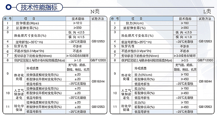 产品规格:1_2㎜N类无复合层卷材 1_8㎜L类纤维复合卷材