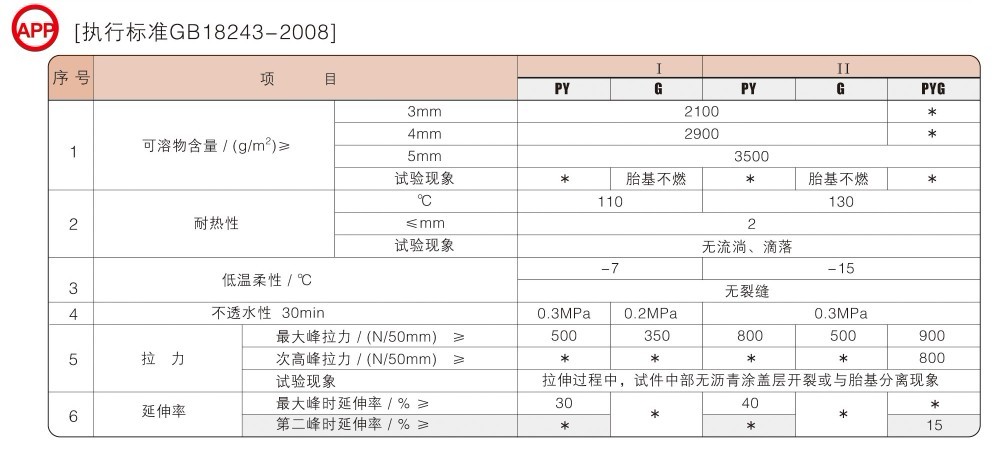 APP塑性体改性沥青防水卷材是以APP(无规聚丙烯)或APAO、APO(聚烯烃类聚合物)改性沥青为浸涂材料,以优质聚酯毡、玻纤毡、为胎基,以细砂、矿物粒(片)料、PE膜为覆面材料,采用先进工艺精制而成的塑性体改性沥青防水卷材。
